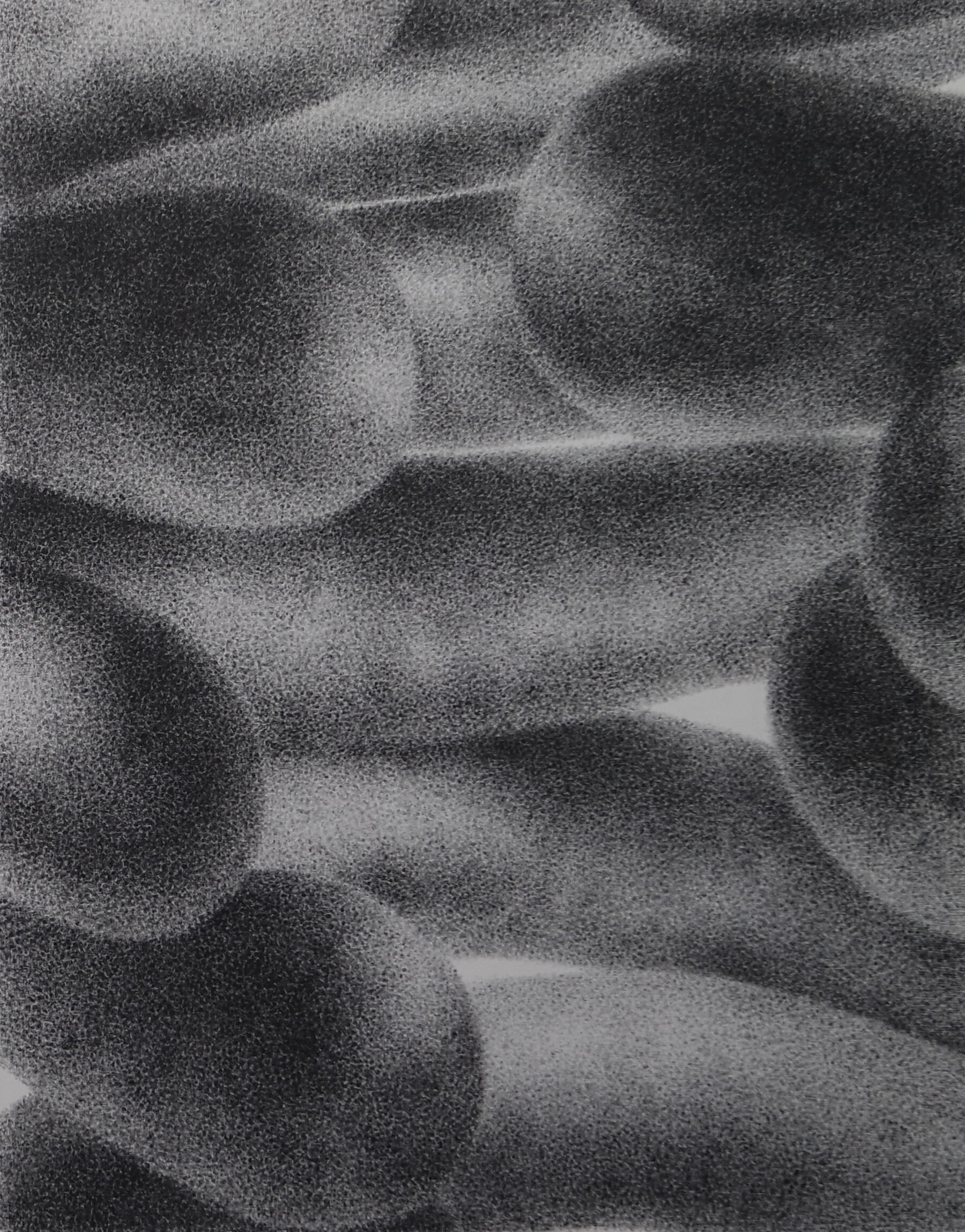 "Emergency Stairwell" symbolize our collective journey along an uncertain path through embracing shapes. Using pointillism with oil and charcoal, I convey the complexities of human connection, as well as the contrast between softness and solidity.